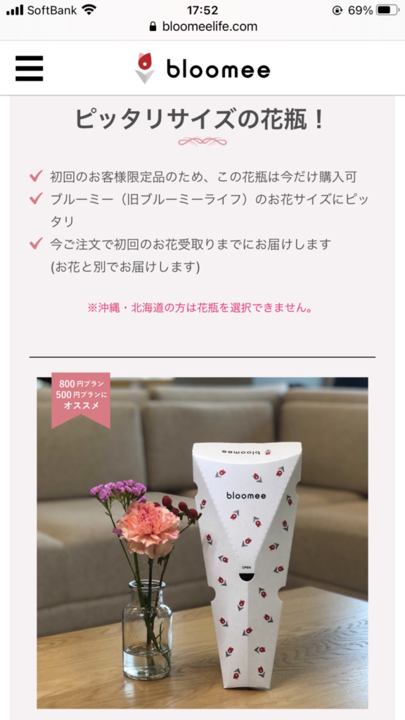 ブルーミーで販売している花瓶を買う方法は①初回購入時②会員ページからの2つです。