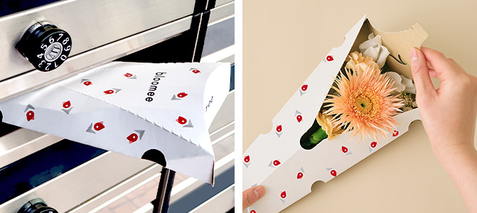 箱についてもbloomeeは、配送の負担からお花の品質を守るために専用の箱を開発しました。ポストに入るサイズ、というだけではなくお花の品質を守るための改良も日々されているそうです!